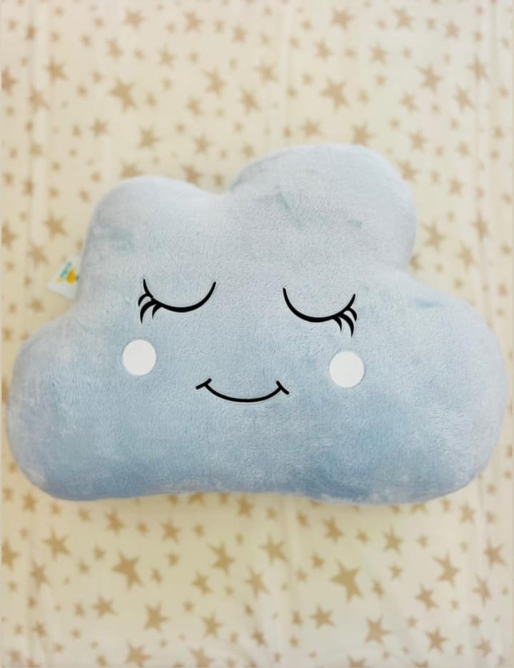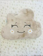 Coussin décoratif en forme de nuage pour la chambre de bébé ou le berceau. Tissu en peluche ultra-douce pour un confort maximal. Disponible en deux adorables designs : nuage endormi (yeux fermés) ou nuage joyeux (sourire et marguerites). Parfait pour ajouter une touche de douceur et de fantaisie à la décoration.