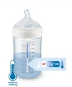 Le biberon en verre NUK Nature Sense 120ml est conçu pour offrir une transition douce entre l’allaitement et l’alimentation au biberon, tout en garantissant la sécurité et le confort de votre bébé. Équipé d’un système de contrôle de température, il permet de s’assurer que le contenu est à la température idéale. Si le liquide est trop chaud, l’indicateur passe du bleu au blanc, assurant ainsi une alimentation sans risque.