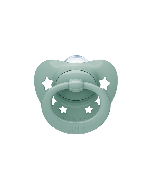 La tétine NUK 0-6 mois Star combine la douceur du silicone avec un design orthodontique qui respecte la bouche de votre enfant.